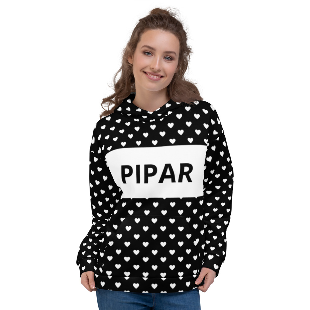 Südametega Must Kapuutsiga Unisex Pusa Pipar
